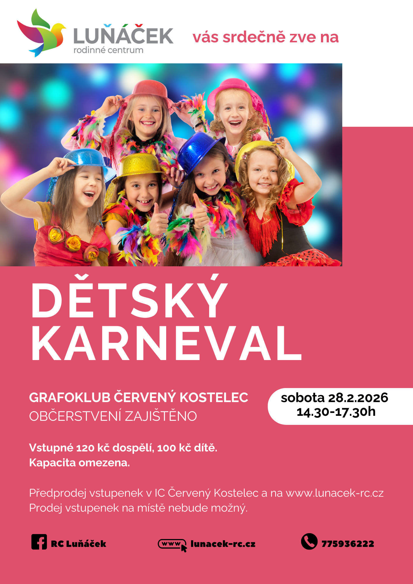 V sobotu 28. 2. od 15:00 hodin zveme všechny holčičky a chlapečky do Grafoklubu. Přijďte si zatančit, zařádit a pobavit se. Všechny masky jsou vítány.